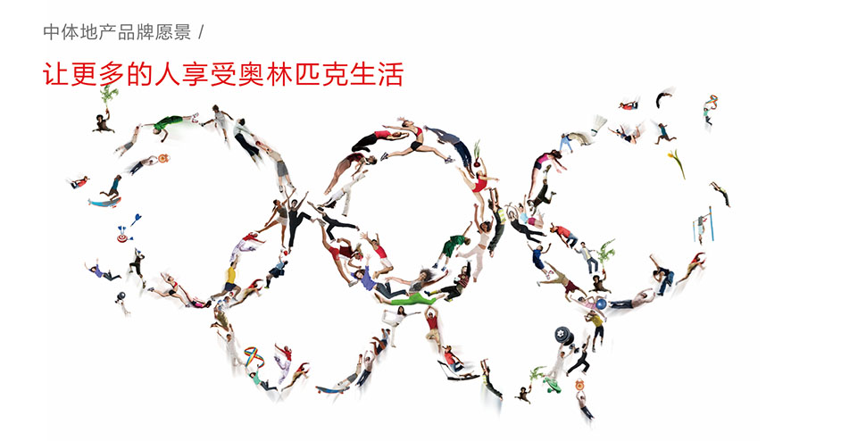 中体地产是中体产业集团旗下所有体育地产开发业务的总品牌,旗下有体育住宅地产、中央体育商务区地产、体育商业地产、体育养生地产、体育休闲地产五大地产品牌,两方同盟为中体地产从奥林匹克花园单一的住宅地产开发到城市体育地产运营商的成功转型提供了完整的品牌策略与设计,标志奥林匹克花园的形象、体育场馆、城市规划图、汉字“中”的意向表达,表明中体地产以“奥林匹克花园”开发为核心,积极参与城市建设,建设以体育场馆、奥林匹克花园社区为中心的城市综合体,用体育改变城市格局。品牌核心价值: