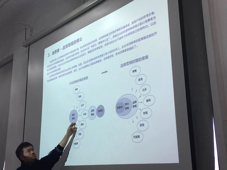 中央美术学院品牌设计课第四节:《品牌设计的中国思想与方法论》,山寨、模仿、全盘西化都不是中国设计要走的道路,中国特殊的文化心理结构导致中国设计需要走自己的道路,通过讲解中国文化在品牌设计中的意义,中国诗学与设计学方法的比较,中国美学在品牌设计中的应用,启发同学们在“国际”还是“民族”问题上如何保持独立思考。